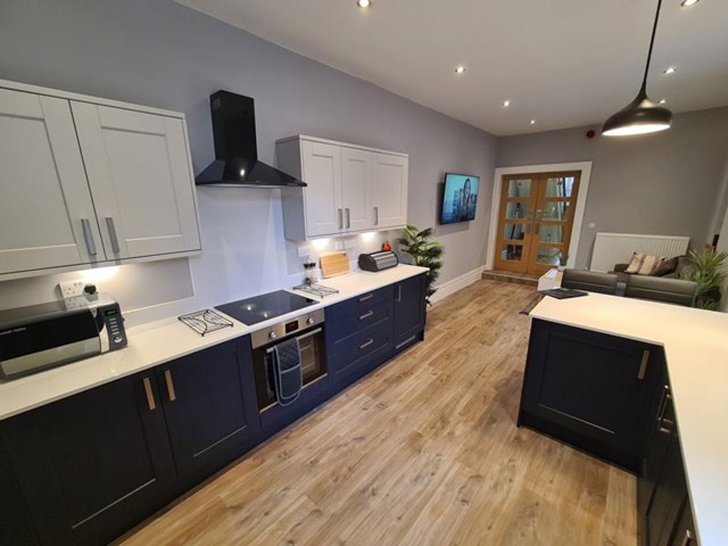 * Superb open plan communal space also with smart TV and patio doors to rear yard space